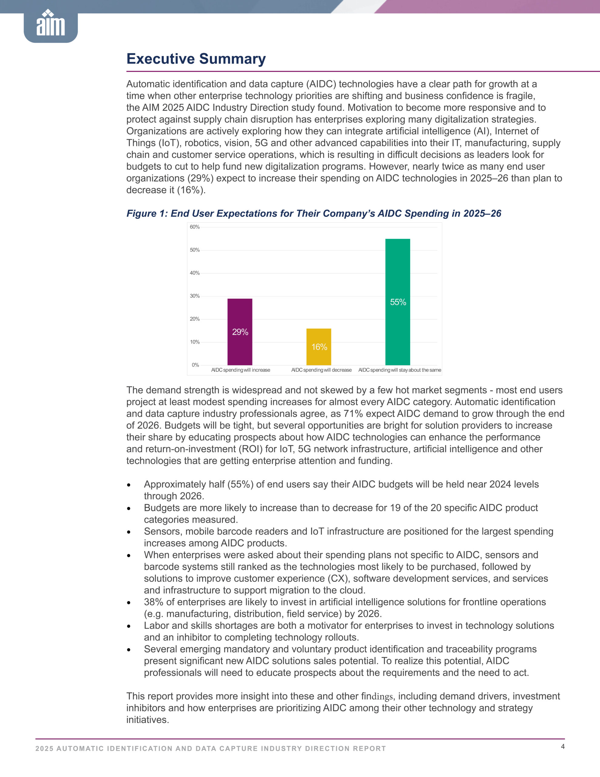 Spending Trends – Nearly twice as many organizations plan to increase AIDC investment than reduce it through 2026.